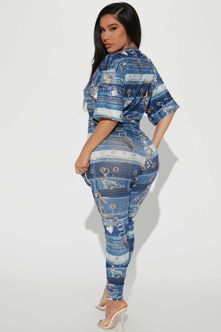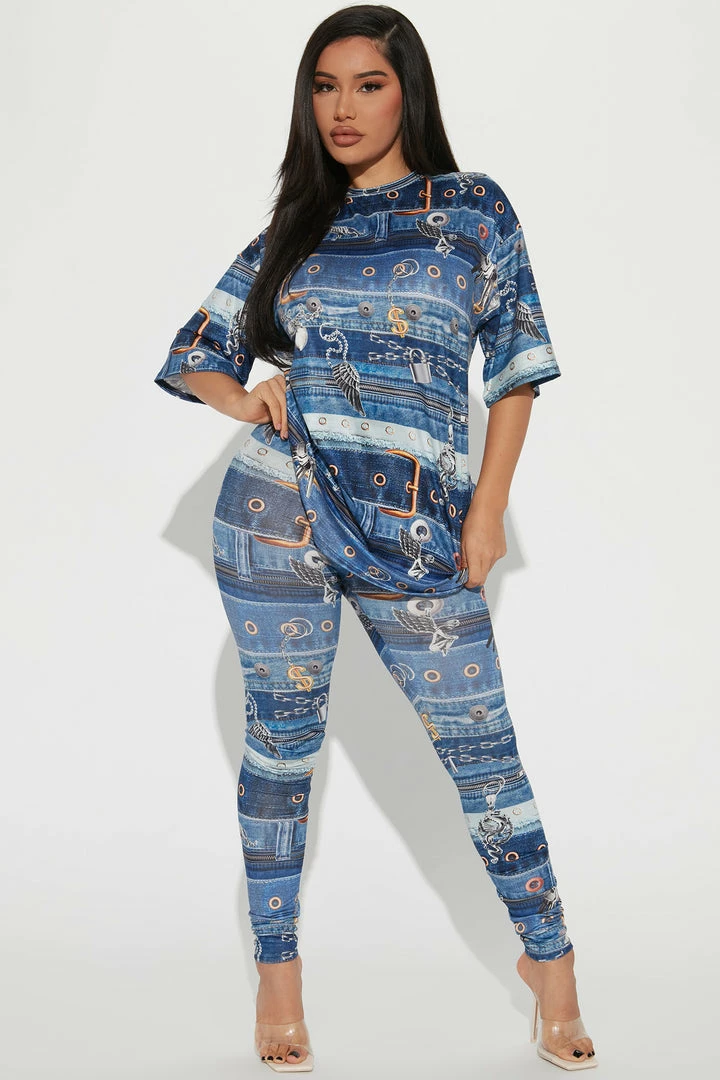 Flash Sale π Fashion Nova Buckle Up Legging Set – Blue/combo Legging Sets βοΈ