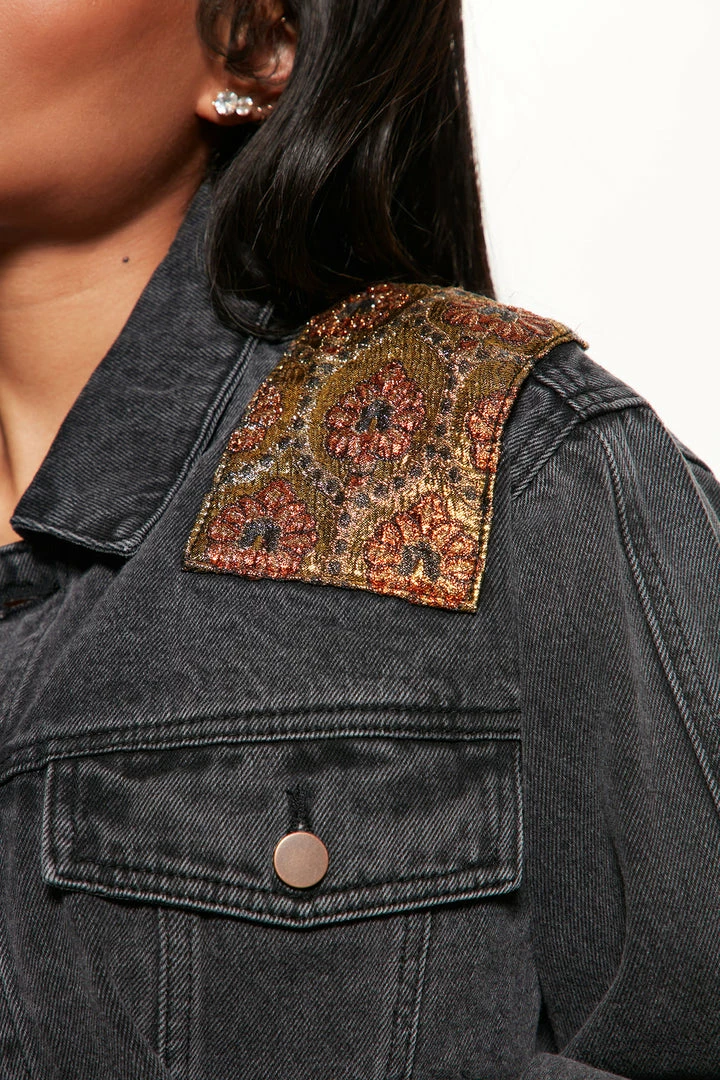 Discount β¨ Fashion Nova Floral Brocade Denim Trucker Jacket – Black π