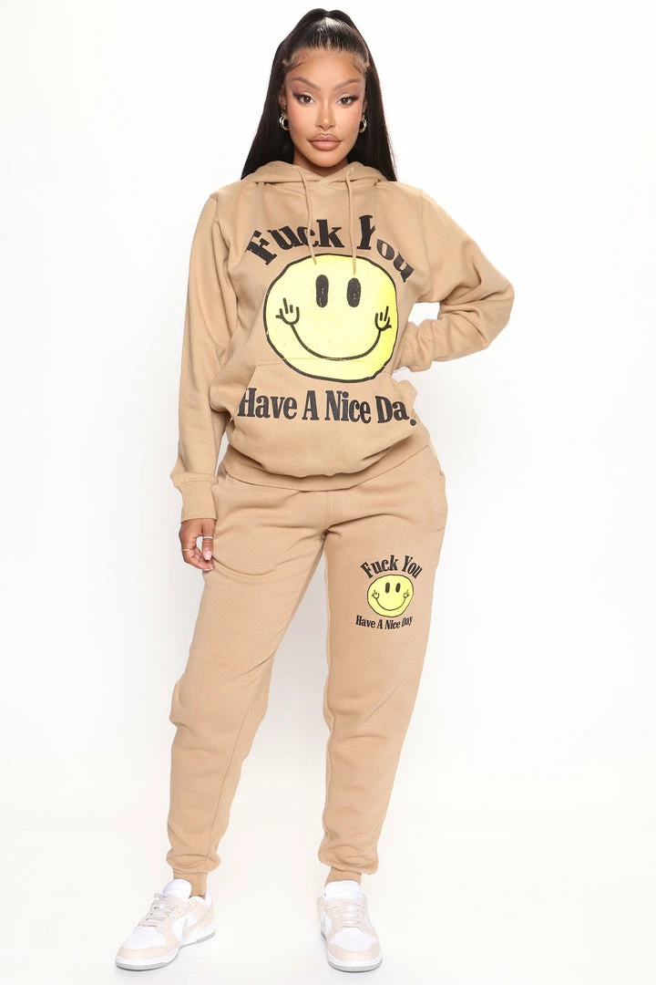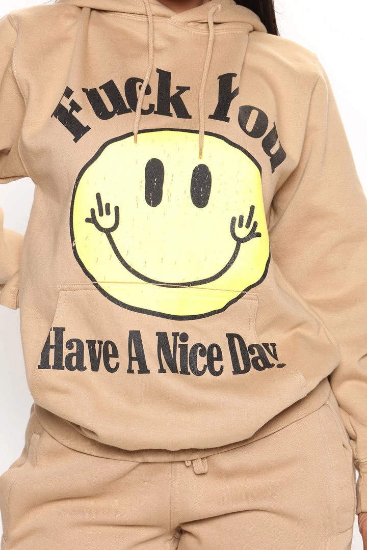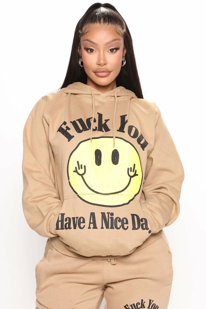 Budget π₯ Fashion Nova Fuck You Have A Nice Day Hoodie – Taupe Matching Separates β€οΈ