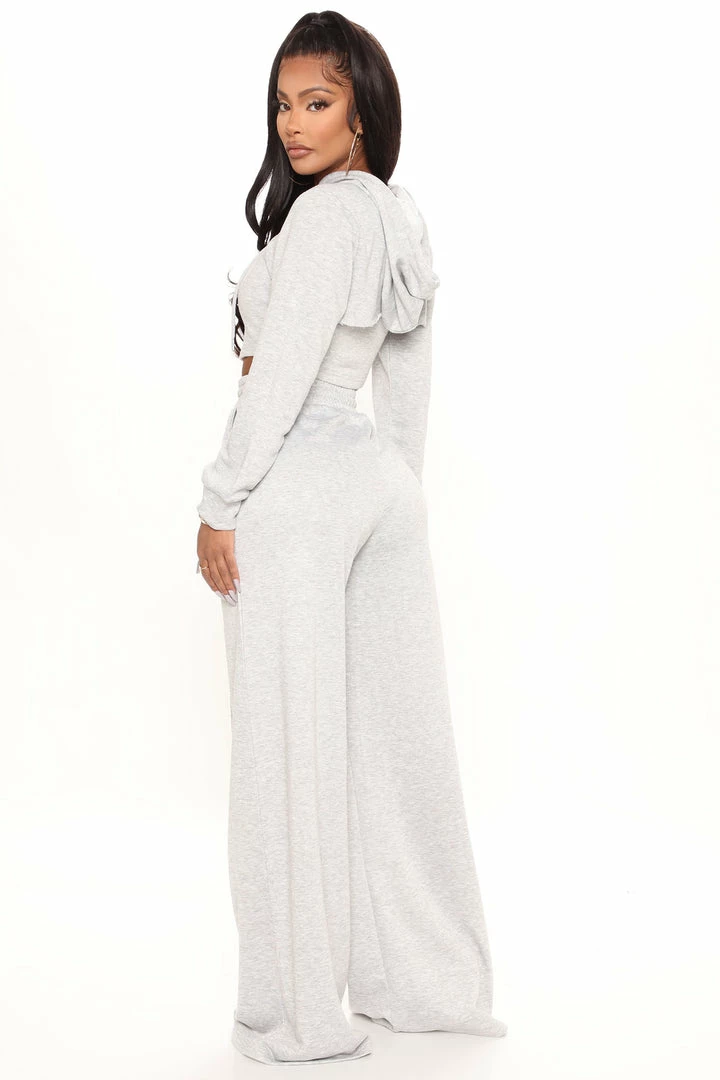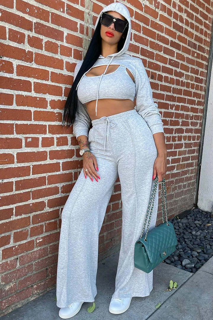 Hot Sale π Fashion Nova Get Over It 3 Piece Pant Set – Heather Grey Wide Leg Sets β¨