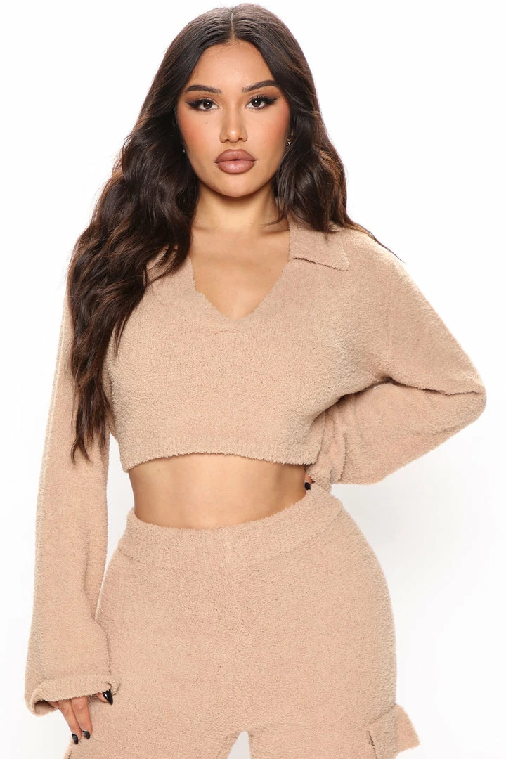 Best Sale β Fashion Nova Let’s Get Cozy Pant Set – Taupe Sweater Sets π