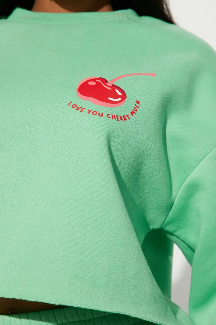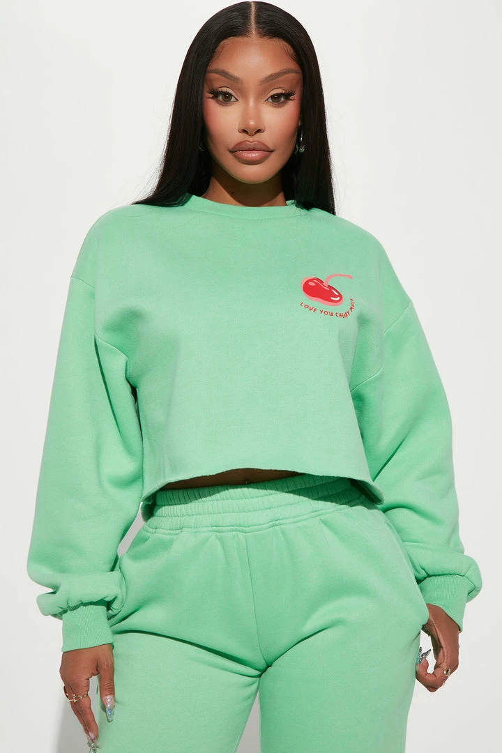 Promo β Fashion Nova Matching Separates Love You Cherry Much Cropped Sweatshirt – Green π₯
