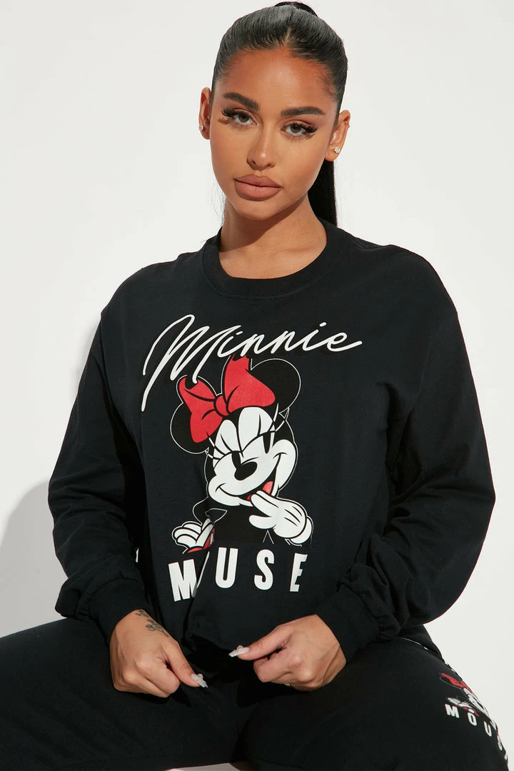 Best reviews of π₯° Fashion Nova Matching Separates Minnie Mouse Cropped Long Sleeve Top – Black β¨