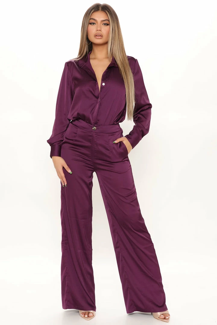 Flash Sale β Fashion Nova Office Favorite Satin Pant Set – Plum β