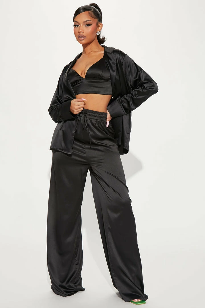 Promo π Fashion Nova Serenity Satin 3 Piece Pant Set – Black βοΈ