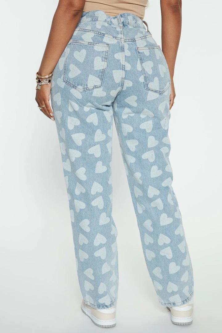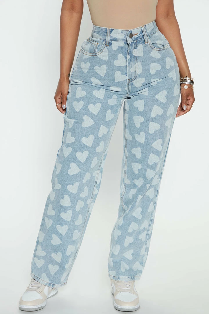 Outlet 𧨠Fashion Nova Skip A Beat Heart High Rise Straight Leg π Jeans – Light Blue Wash Matching Separates π
