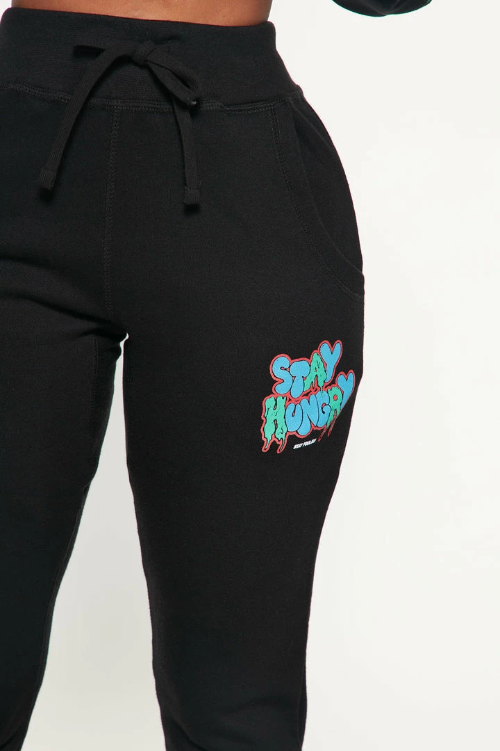 Flash Sale β Fashion Nova Stay Hungry Graphic Jogger Pant – Black Matching Separates π