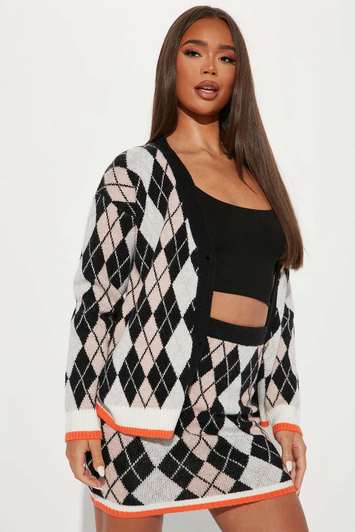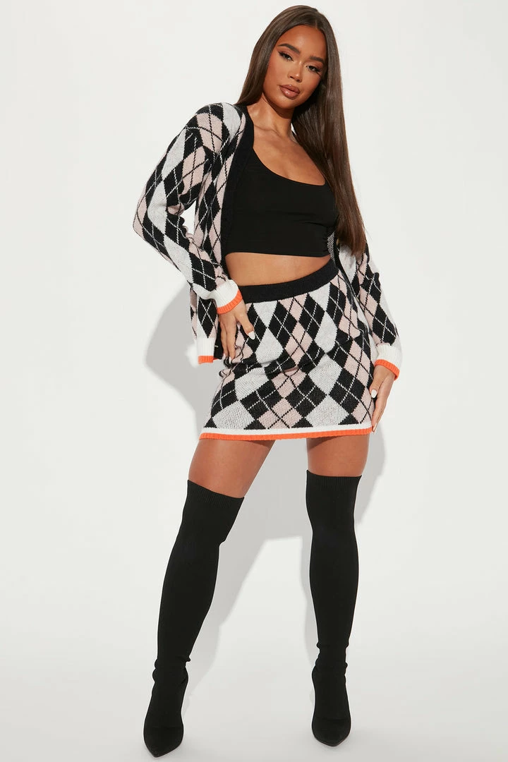 - Plaid Sweater Skirt Set