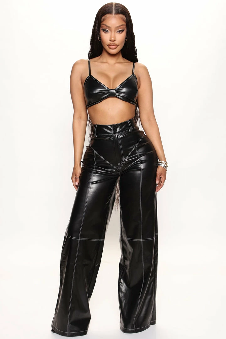 Best Sale π Fashion Nova Wide Leg Sets Hot List Leather Pant Set – Black π