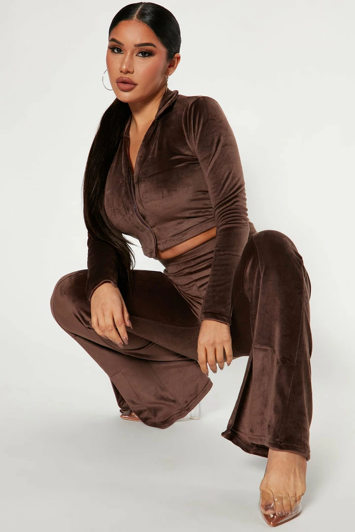 Best Pirce β Fashion Nova Wide Leg Sets Real Vibes Velour Pant Set – Chocolate βοΈ