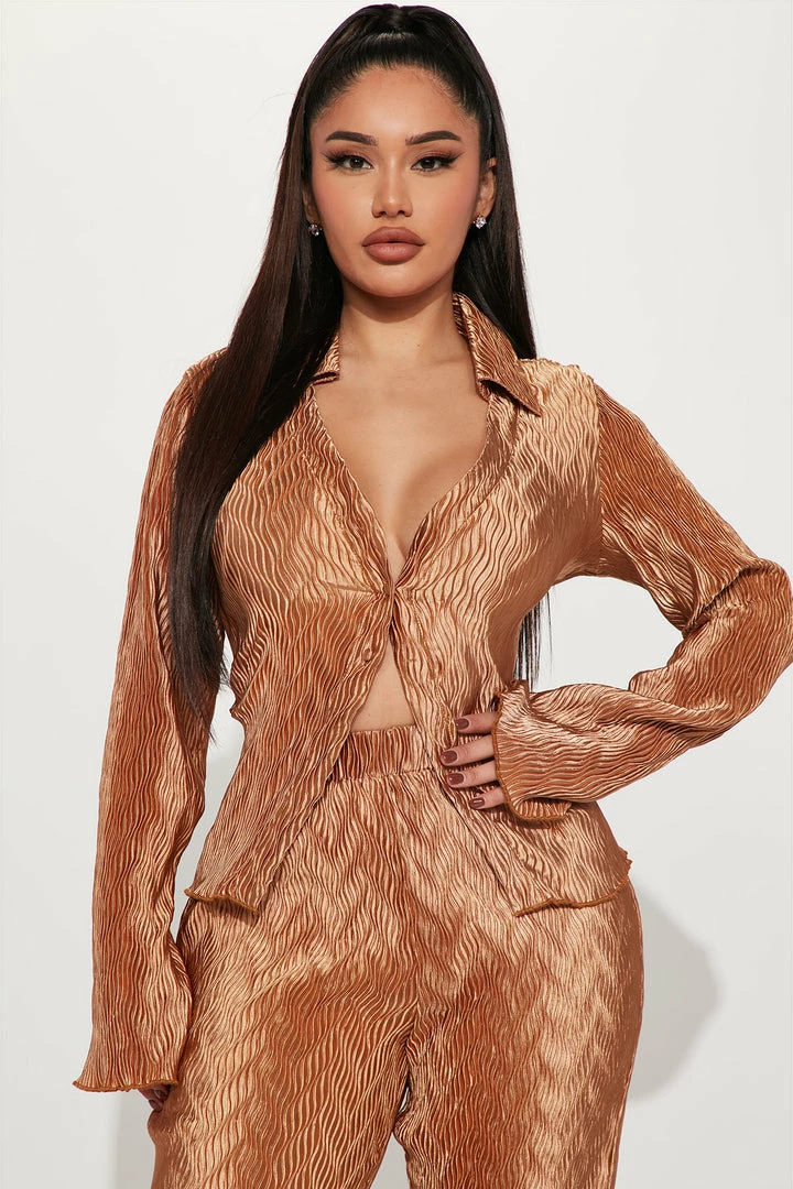 Best deal π― Fashion Nova Wide Leg Sets Talking Again Plisse Pant Set – Copper π